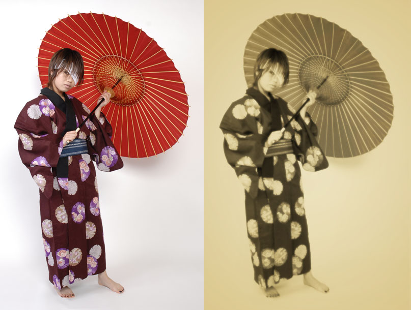 ■ 画像処理には、大きく分けると、修正、合成に分かれます。今では、これらが当たり前のようになっています。フィルムの時代でも印刷、デザインでこのような処理は行われていましたが、現在では、カメラマンがよりイメージに近づけるため、全てを行っています。最近では画像処理を専門としたフォトレタッチャーという職業がでてきています。カメラマンが全て一貫して行いますので、デジタルでの著作権についても問題なく、データを使用することができます。CGもかなり作られていますが、実写でしか表現できないリアリティー感を残していきたいと思います。最近では便利なアプリも登場していますが、プロ写真家の目を通したレンズ、距離感、パース、質感、光の向き、影ので具合を重視し、素材から構築しています。