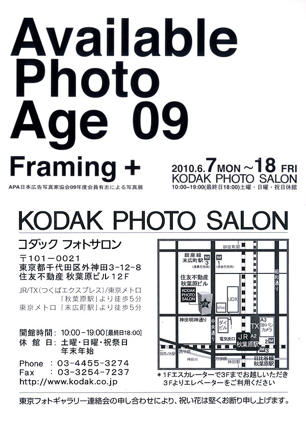 | ■APA日本広告写真家協会09年度有志による写真展 http://wwwjp.kodak.com/JP/ja/professional/photoSalon/2010/p20100607.shtml |