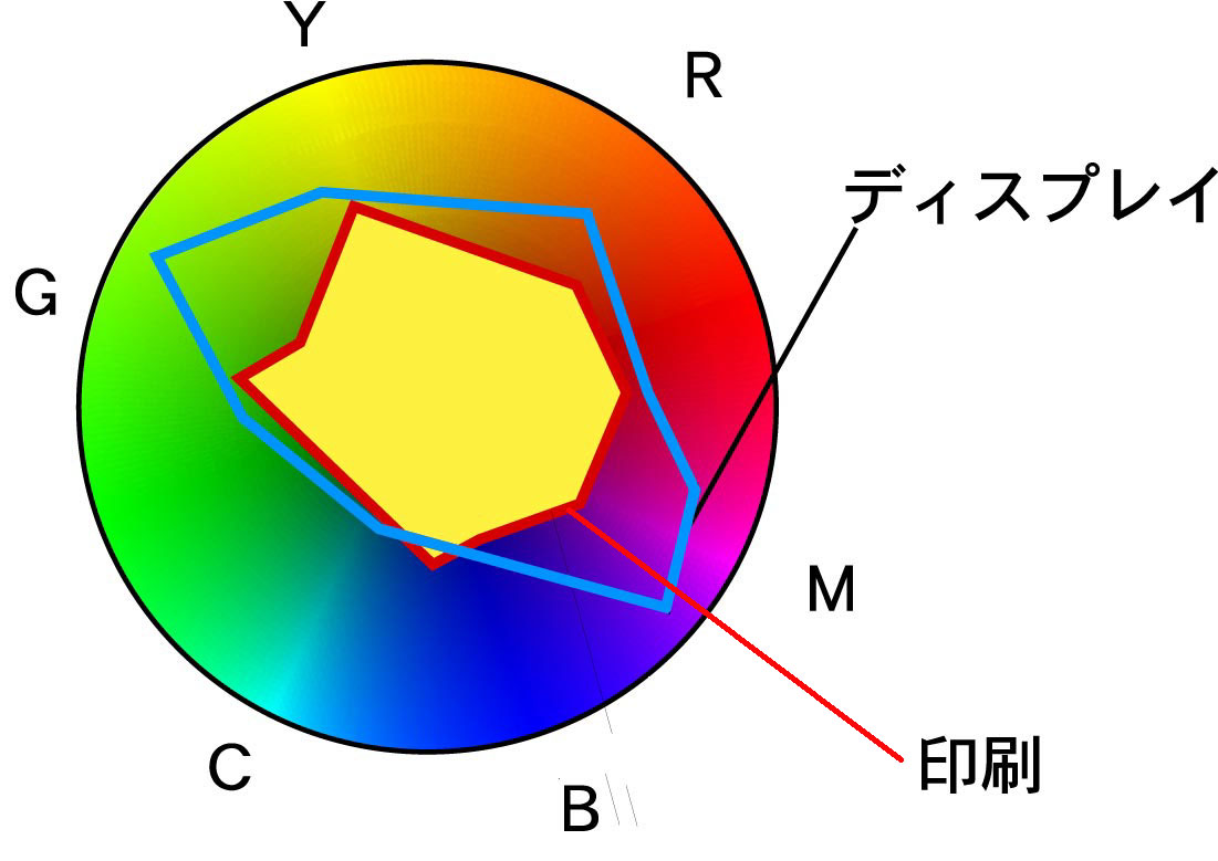 大きな要因は、モニタとインキとの色空間のちがいからです。最近では、sRGB / AdobeRGBなど、色空間を撮影時に選択して、プリント、印刷に渡しています。一般的には、AdobeRGBは、sRGBよりも広い色再現領域を持ち、印刷や色校正などでの使いやすいとのことで、DTPなどの分野では標準的に使用されています。しかし、sRGBは国際電気標準会議 (IEC) が定めた国際標準規格であり、一般的なモニタ、プリンタ、デジタルカメラなどではこの規格に準拠しているので、ここ最近ではsRGBで撮影する方も多くなっています。プリンターにおいては、sRGBに近づいて再現になりつつあります。