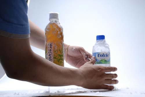 | 商品撮影特有のリアル感の授業 暑くてもとけない氷のもと、たれない水滴を使い、冷やし感を体験 今のゲーム世代のバーチャルで育った生徒たちには、今までにない新鮮な感覚です。 |